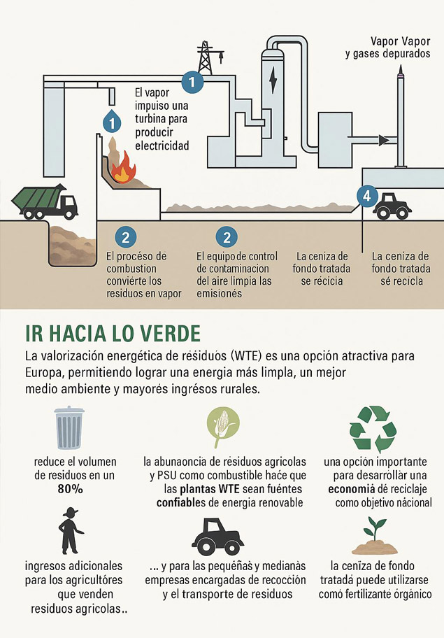 A través de la tecnología Waste-to-Energy (WtE), cada tonelada de residuos se transforma en energía limpia para comunidades e industrias.